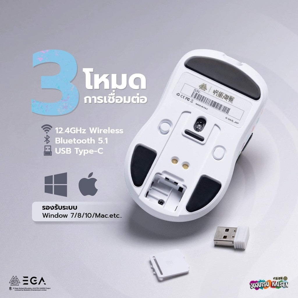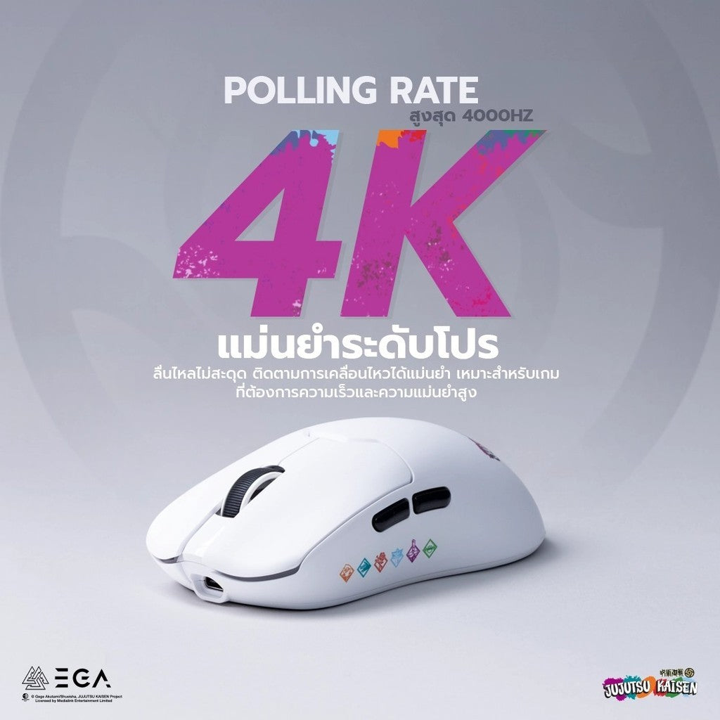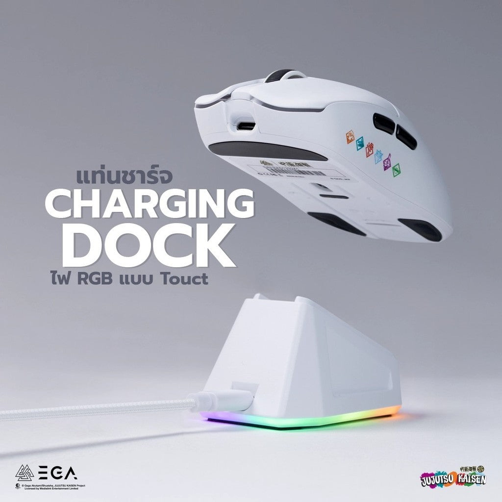 [価格] マウス「EGA I 呪術廻戦 ホワイト LIMITED EDITION」 4K DPI 26000 พร้อมแท่นชาร์จแม่เหล็ก