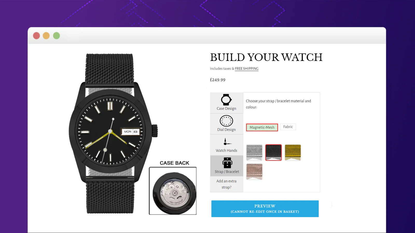 ตัวอย่างผลิตภัณฑ์ที่ปรับแต่งได้แบบ 3D: ใช้เทคโนโลยีภาพแบบ 3D เพื่อให้ลูกค้าเห็นภาพตัวอย่างผลิตภัณฑ์ที่ปรับแต่งแล้วในมุมมองต่าง ๆ ซึ่งช่วยเพิ่มประสบการณ์ที่ดีในการใช้งาน